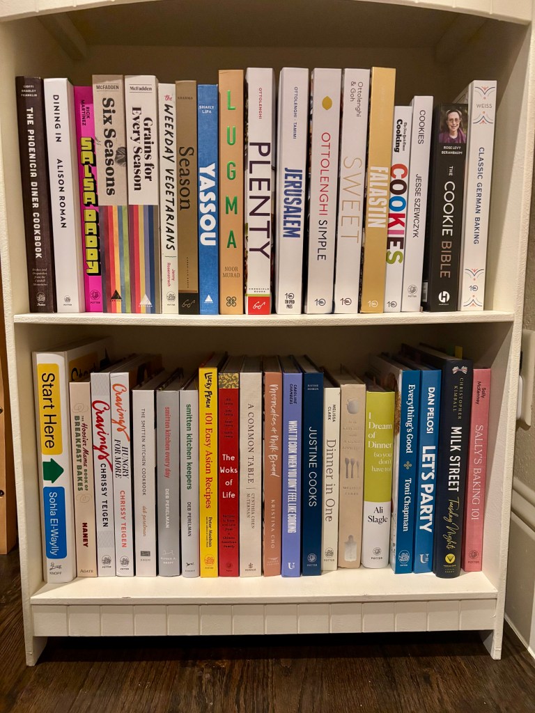If so, you have found the right little place on the Internet. I am a cookbook lover and foodie. I finally, after all these years, put a little bookshelf in the corner of my open concept dining room and kitchen to display 37 books in my collection of nearly 200. It is much more convenient, and probably safer, than the unwieldy “cookstack” I previously kept on the kitchen counter.